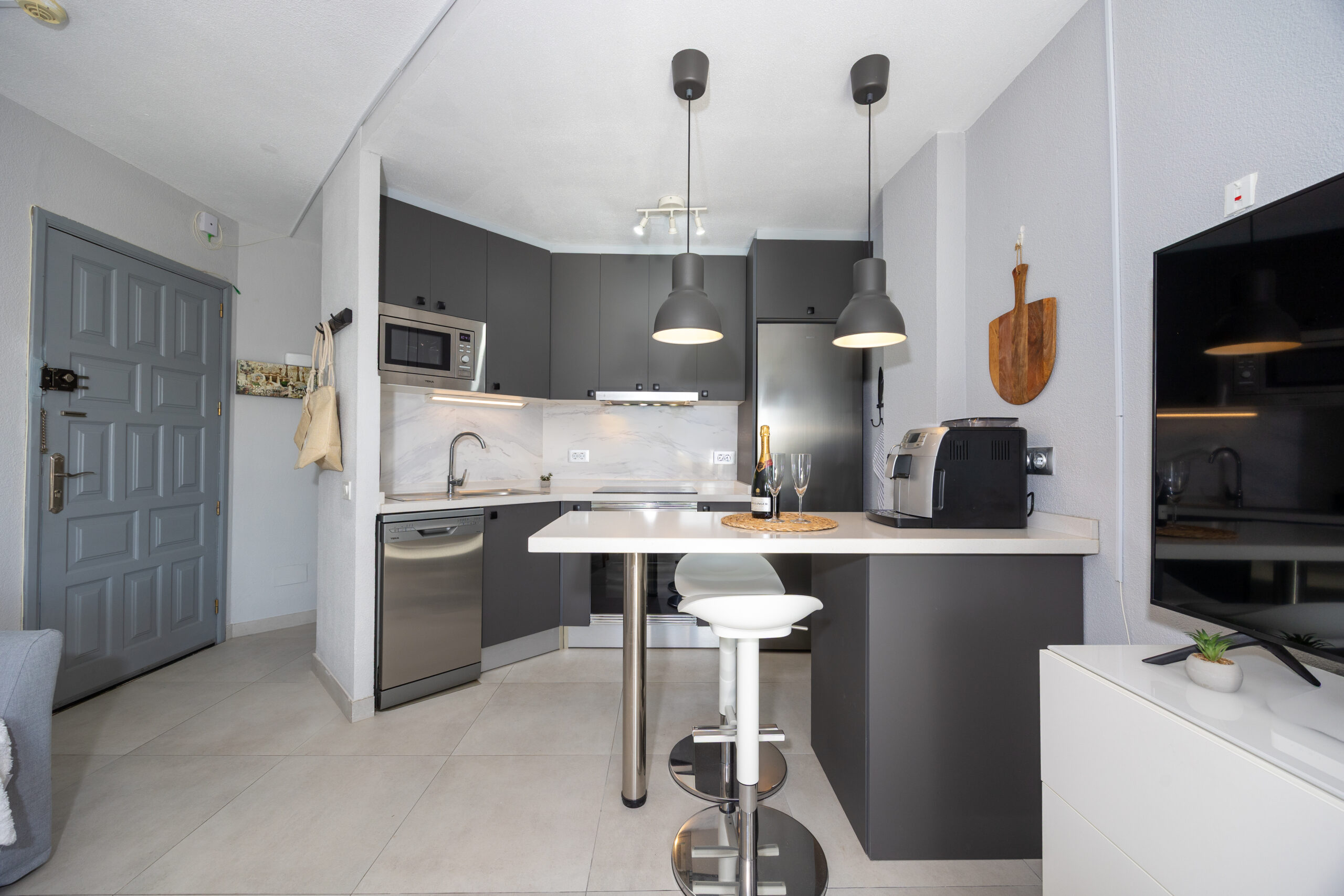 This beautifully renovated apartment is situated on the top floor of the well-known El Cardenal complex, ideally located right next to the shopping centre in Playa del Cura.